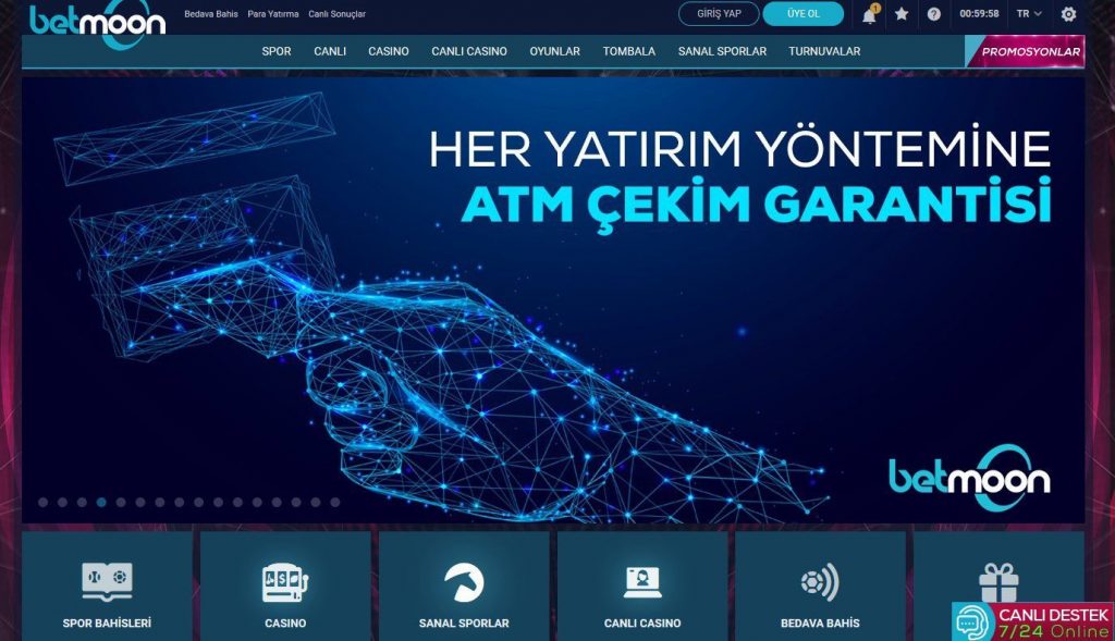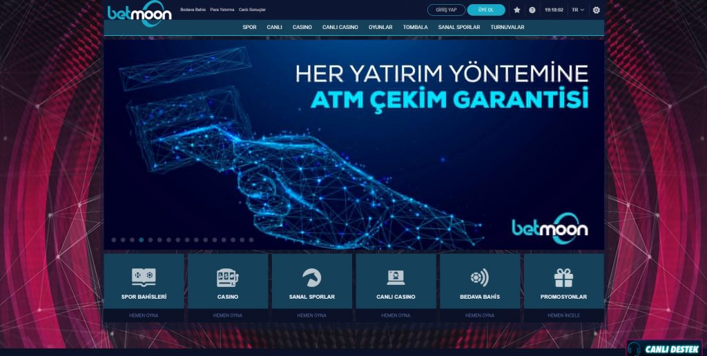 Bu sitenin çeşitli ülkelerde uzun vadeli bir yaşam bahis olduğu bilinmektedir. Betmmoon Bahis sitelerindeki casino oyunu, bahis aşıklarının ilk tercihini içerir ve severlerin dakikalık eğlenceli ve eğlenceli geçirmeleri için bahis yapmalarına neden olur. Betmoon bahis sitesindeki mevduat seçenekleri güvenilir ve hızlı bahis yöntemleridir; Papara, Para Teslimi / EFT, Para Mevduatı ile QR, Referans Kodları ile Akbank, Para Yatırma Seçenekleri, Cepbank gibi ödeme seçeneklerinden yararlanabilir.