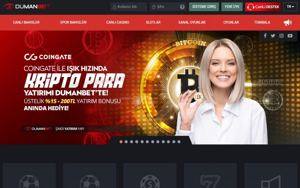 Duman bet giriş imkanını üyelerine kesintisiz olarak sunarken, internetin olduğu her ortamdan bu siteye girebilmek mümkün olacaktır. İnternet üzerinden online hizmet veren bu canlı bahis sitesine ister bilgisayarlarla, ister tabletlerle, isterseniz de mobil uyumlu olan cihazlarla erişimde bulunma şansına sahipsiniz. Farklı cihazlardan giriş yapma imkanını sizlere ulaştıran sitenin mobil uyumlu oluşu; her türlü ortamdan internet ile giriş yapılabilmesi adına büyük bir fırsattır. En kazançlı slot oyunları yazımıza göz atmadan sakın bir yere ayrılmayın. Dumanbet hakkında her türlü bilgiyi paylaşmak adına oluşturduğumuz sitemizi sık kullanılanlara kayıt edebilirsiniz.
